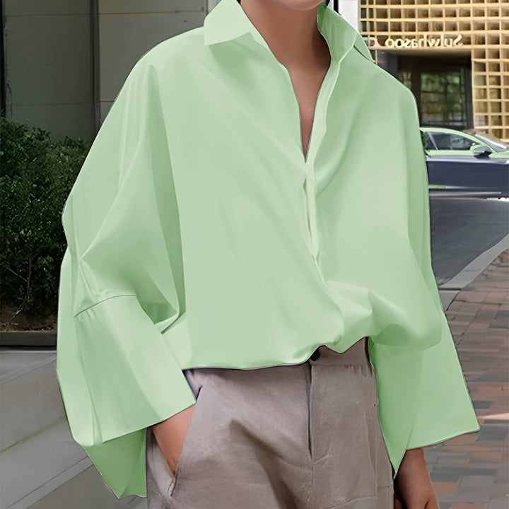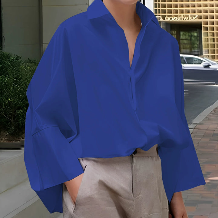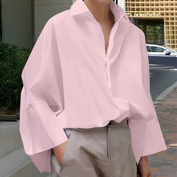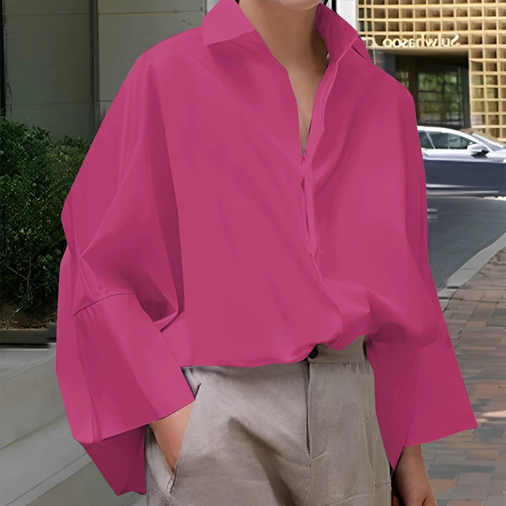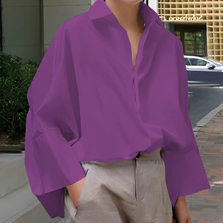 Perfect for all seasons, it offers a loose fit and a simple lapel design. Ideal for commuting or casual outings, this top adapts effortlessly to various occasions. Its loose silhouette ensures comfort throughout the day.