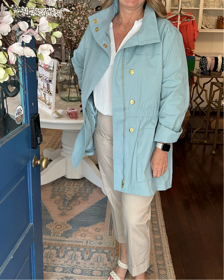 - Adjustable sleeves - leave long or roll up & snap sleeves for 3/4 length