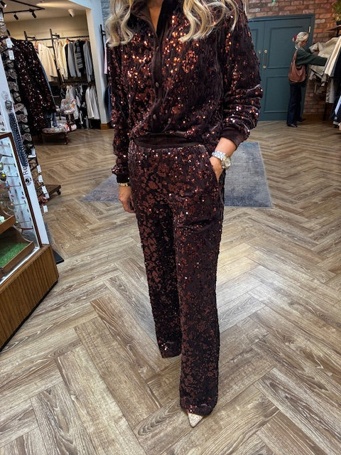 Radiate effortless elegance with this rich coffee bean velvet shirt, delicately adorned with shimmering sequins that add a touch of glamour to your look. The plush velvet collar and covered velvet buttons elevate the design, blending vintage charm with modern sophistication. Crafted to flatter, this shirt transitions seamlessly from evening soirées to festive celebrations.