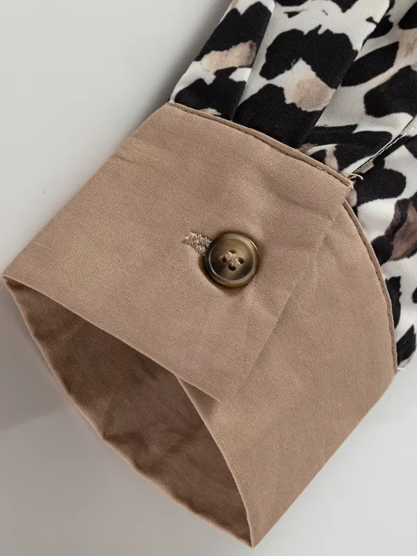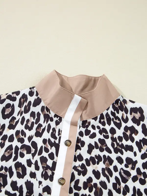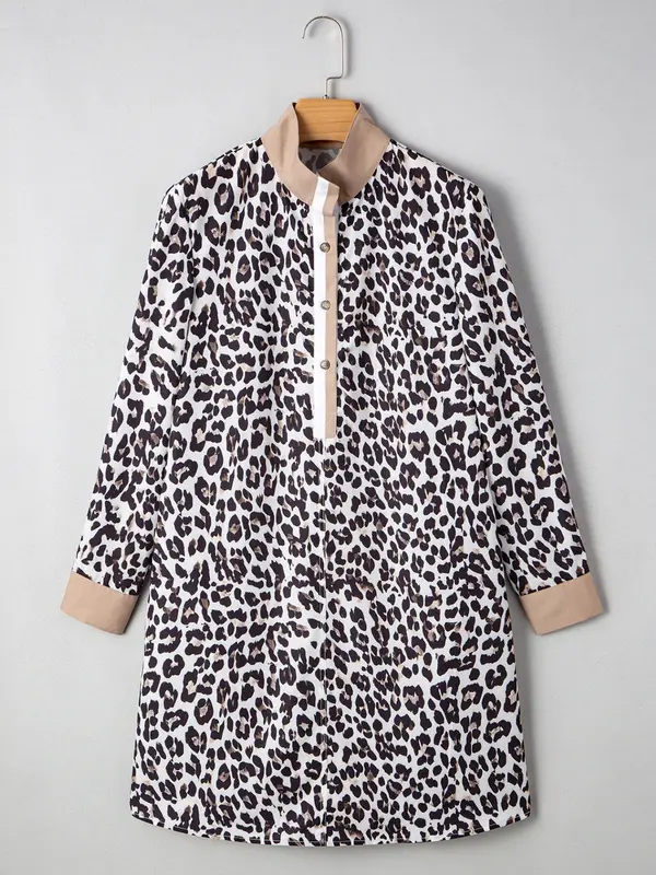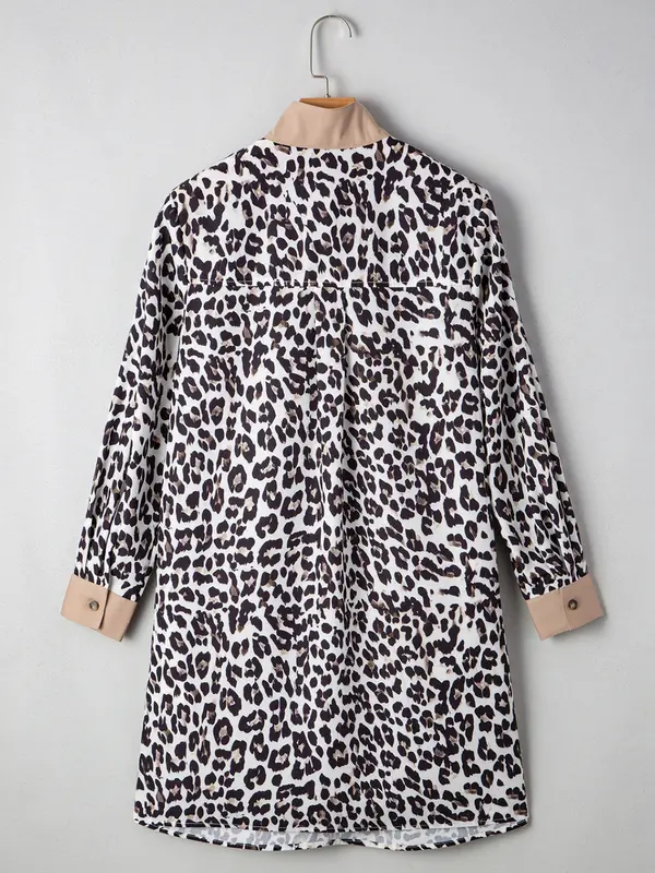 Features a distinctive leopard print that adds a bold flair to the traditional dress form.