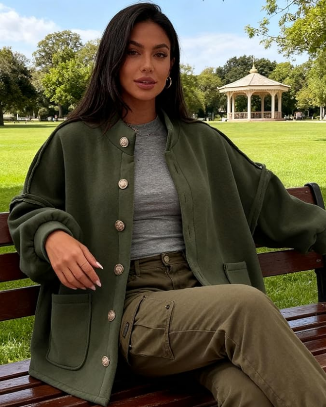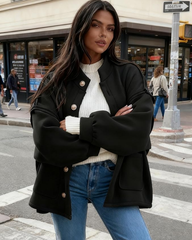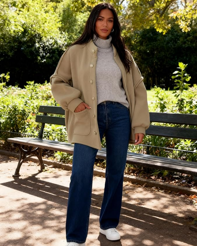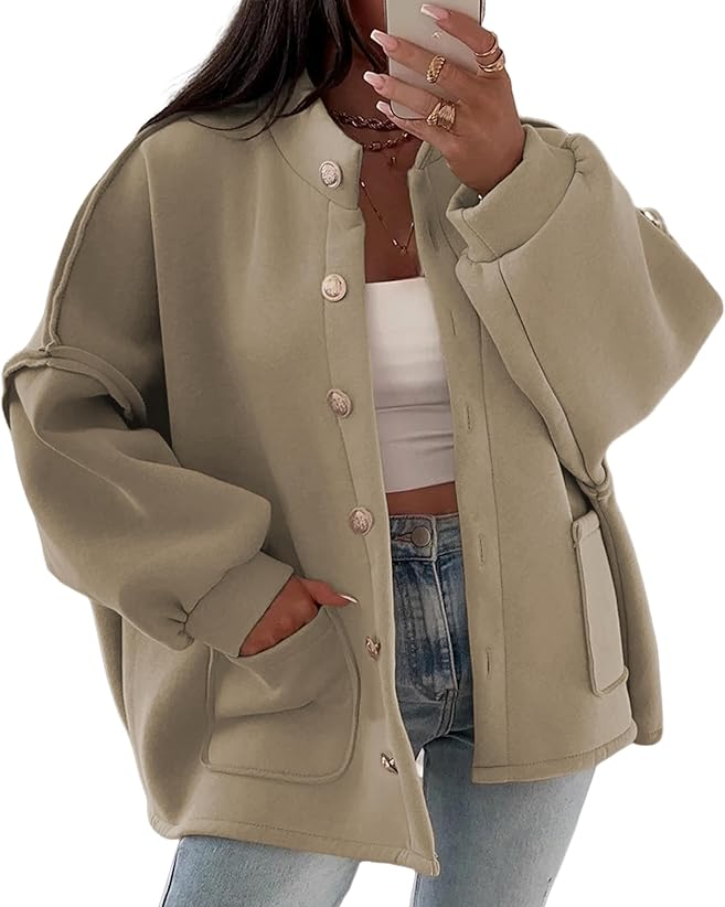 - Design: Trendy coats for women features oversized fit, long lantern sleeve, button down closure, elegant stand-up collar, drop shoulder, casual loose fit, two functional side pockets, offering both comfort and a timeless vibe