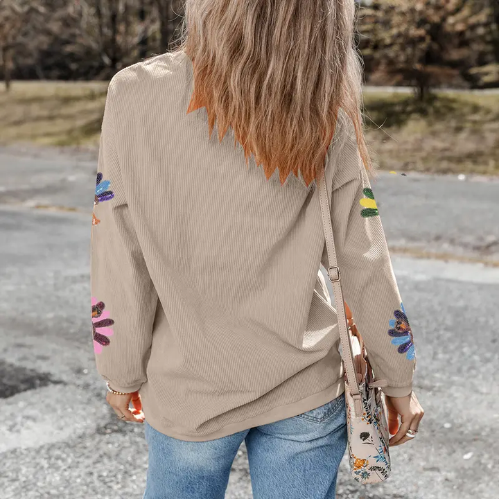 This sweatshirt features vibrant sequin turkey graphics that embody the spirit of Thanksgiving.Made from soft corded fabric, this sweatshirt ensures comfort and warmth. The drop shoulder design provides a relaxed fit.With a baggy fit, this sweatshirt offers maximum comfort and ease of movement. It can be easily dressed up or down for various occasions.